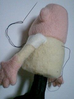 今までは腕部分にそのまま羊毛を刺していたのですが