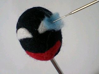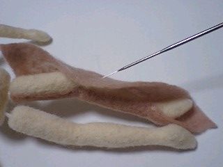 肌色のフェルトを針で刺して貼って色をつけていきます