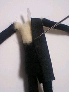ワイシャツ部分に白いフェルトを刺して貼ります