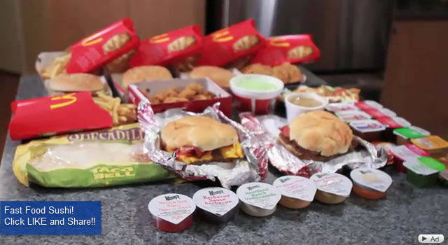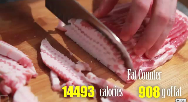 ファーストフードをベーコンで太巻きみたいに