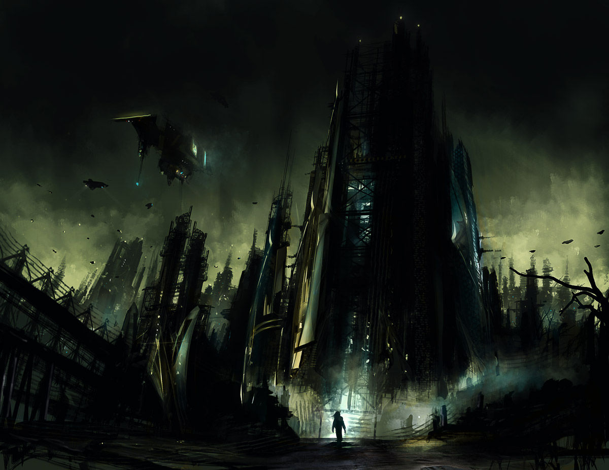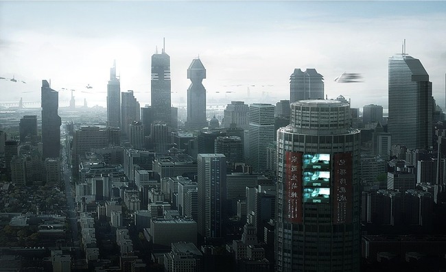 ネットとバーチャルリアリティが発達した未来都市なら大規模なオフィスビル群や空を埋め尽くすエアカーってなくなるんじゃないかな?
