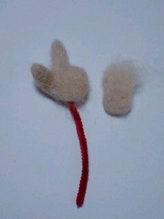 モールでだいたいの骨組みを作り、独立した指に羊毛を巻いて刺します