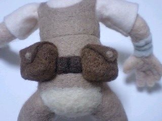 まずは茶色の羊毛で腰パッドみたいなものをつけて
