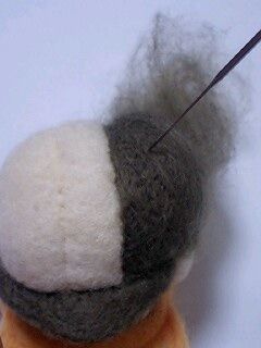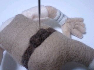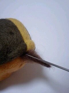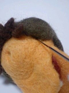 肌の部分に羊毛を刺して色付け