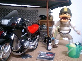手持ちの宇宙船はないですがせめてバラックでバイク屋を作ってみました
