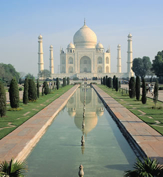 タージ・マハルは、インド北部アーグラにある総大理石造の墓廟建築。1632年着工、1653年竣工。1983年にユネスコの世界遺産(文化遺産)に登録され、2007年に新・世界七不思議に選出された。