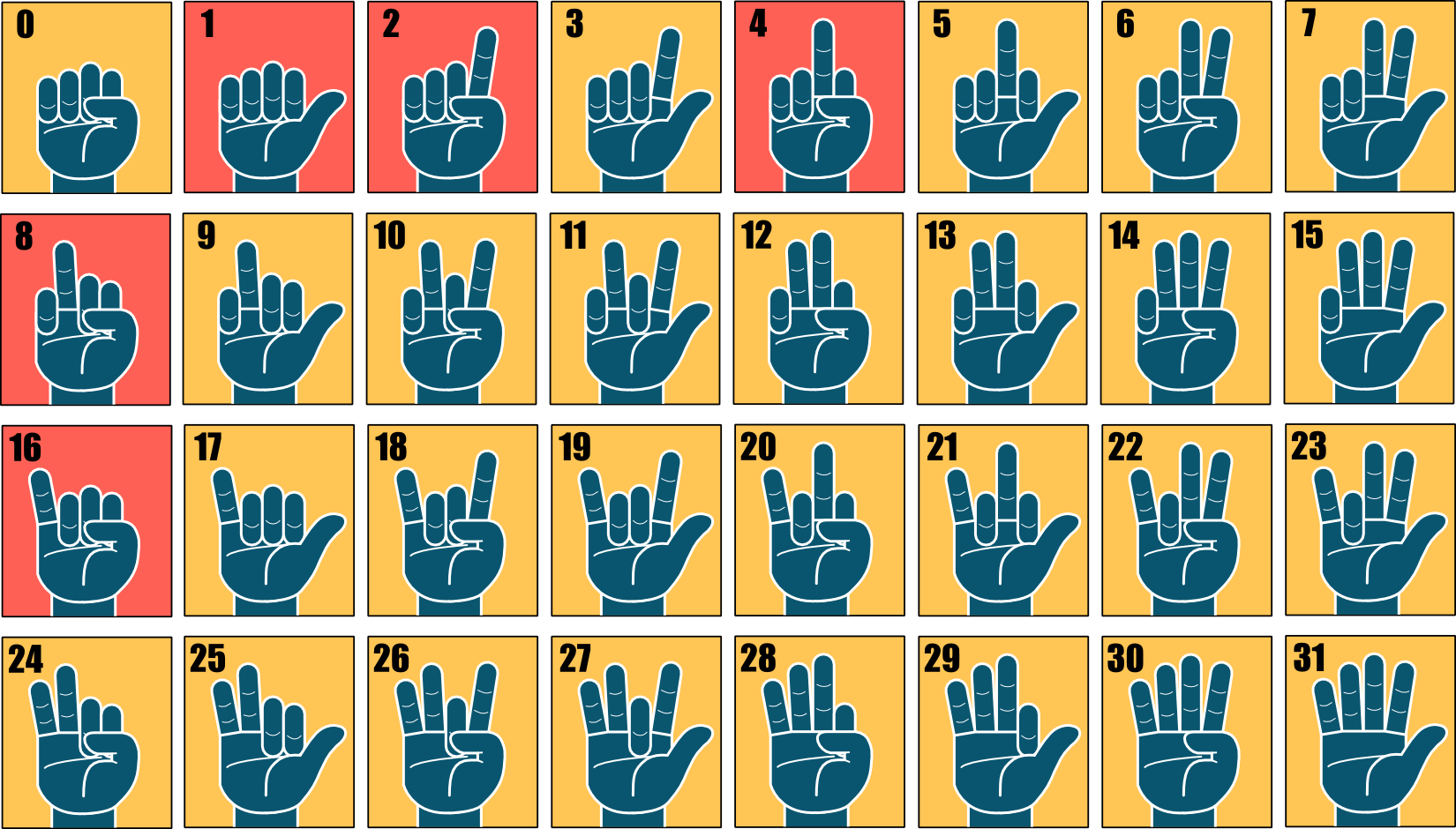両手を使うと1024まで数えられる