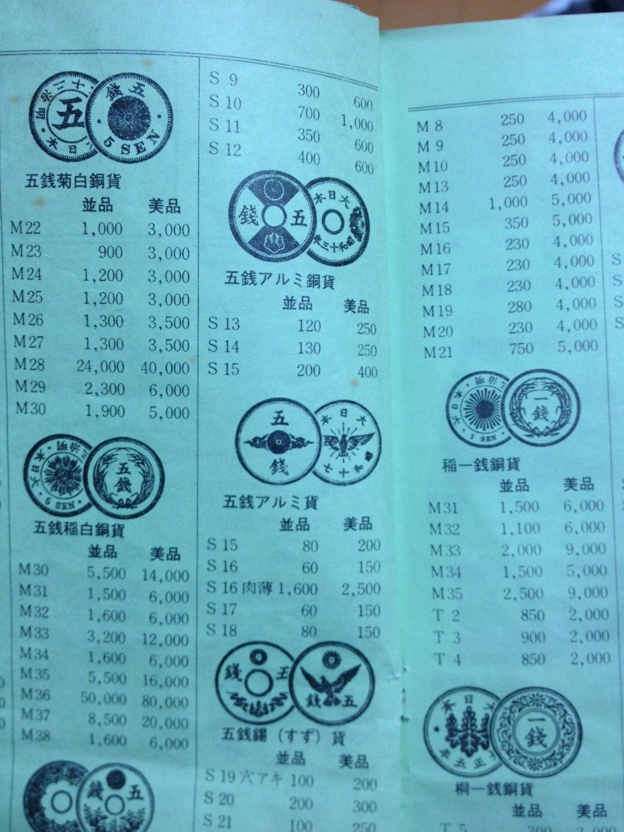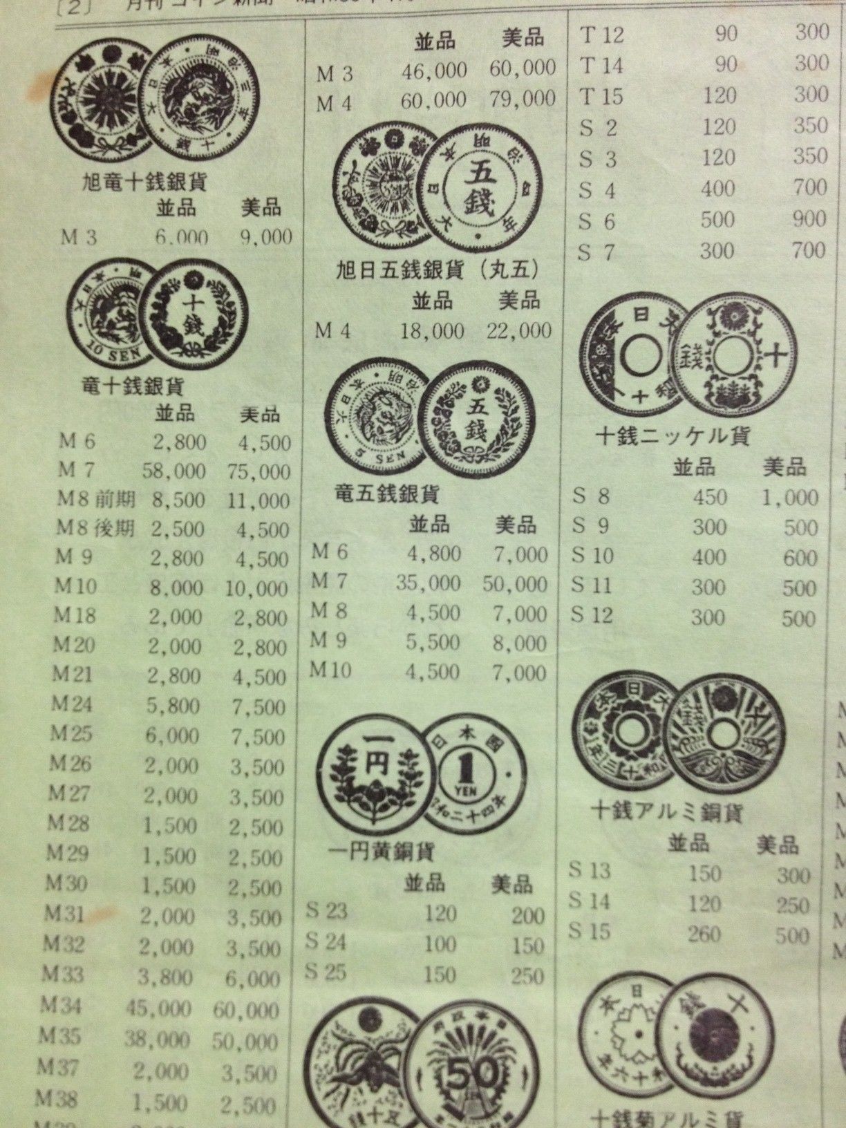 買い手あっての売値。今はコインコレクターも減って、古銭は大幅に値崩れしてるよ