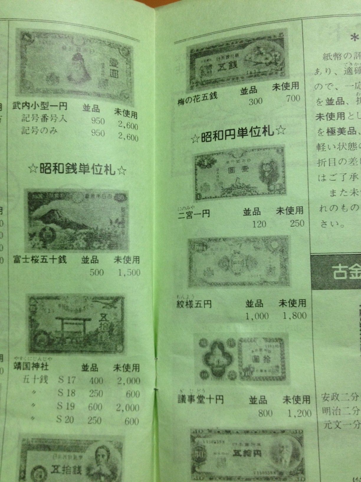あの紙に書いてある値段はすべて「未使用品」に限ってる。