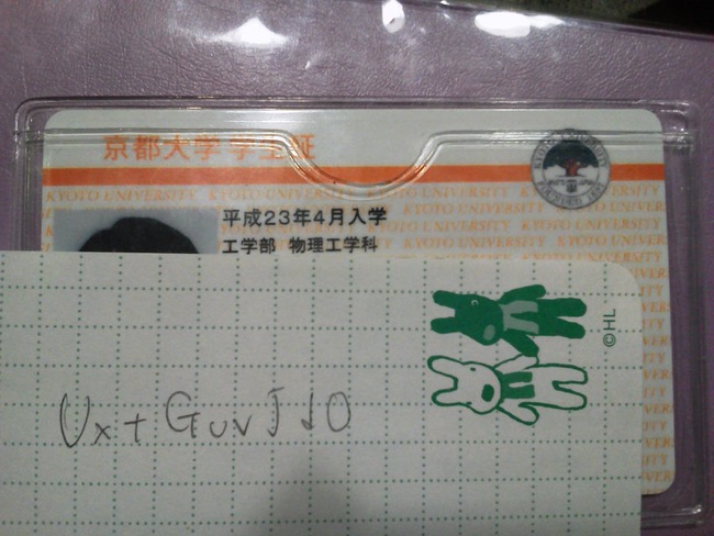 今度は自分が学生証をうpして後輩の応援をしたいと思います!
