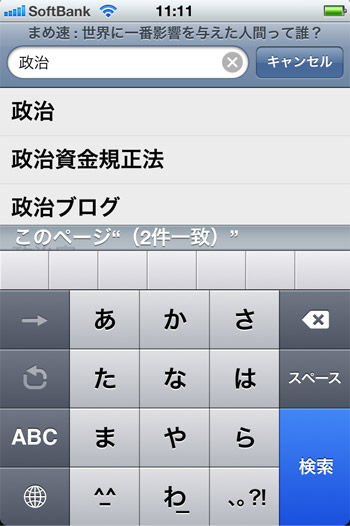 あとはSafariの上の検索窓に語句を打つとCtrl+f機能が使える