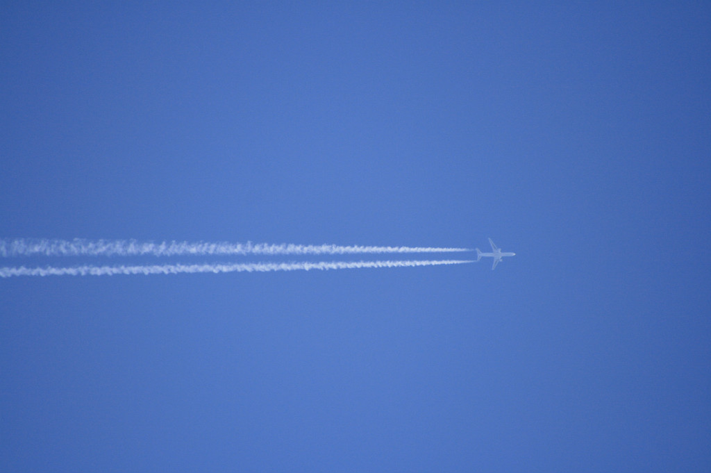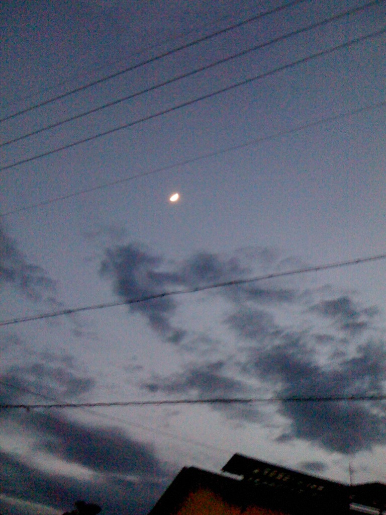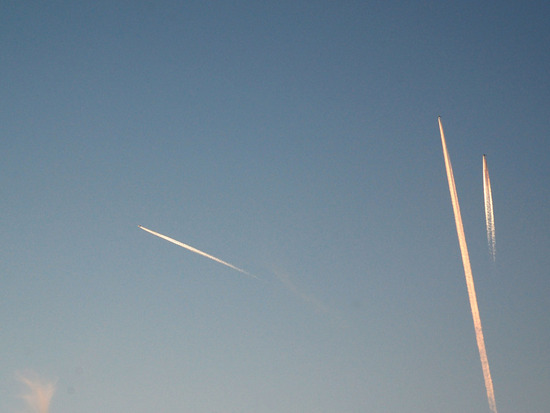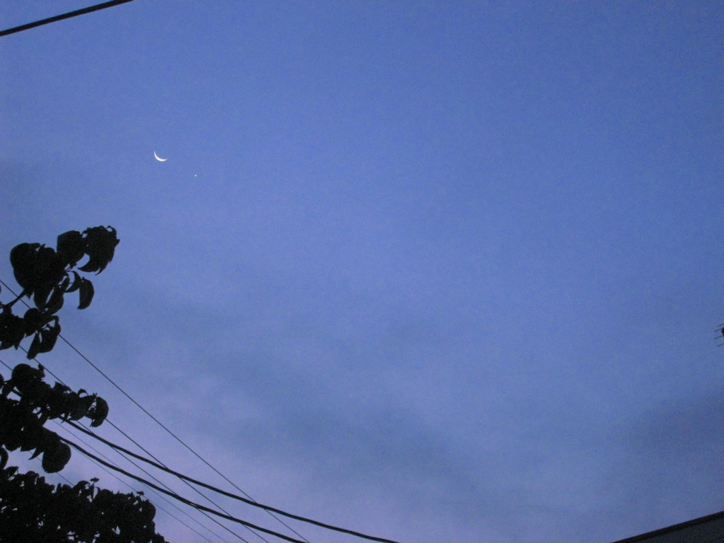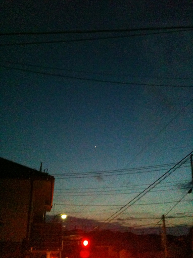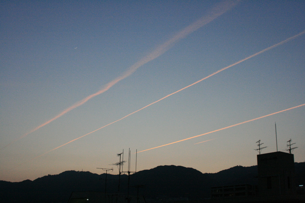 最後に一枚、あんまり綺麗じゃないけど月と金星と飛行機雲四連続