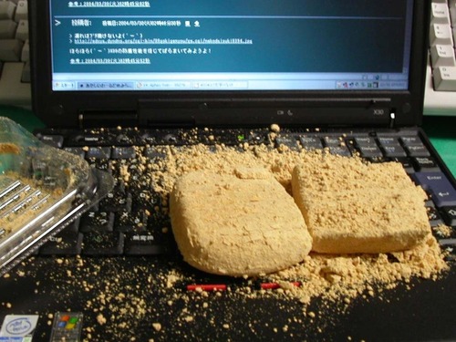なんでキーボードに水饅頭のってんの